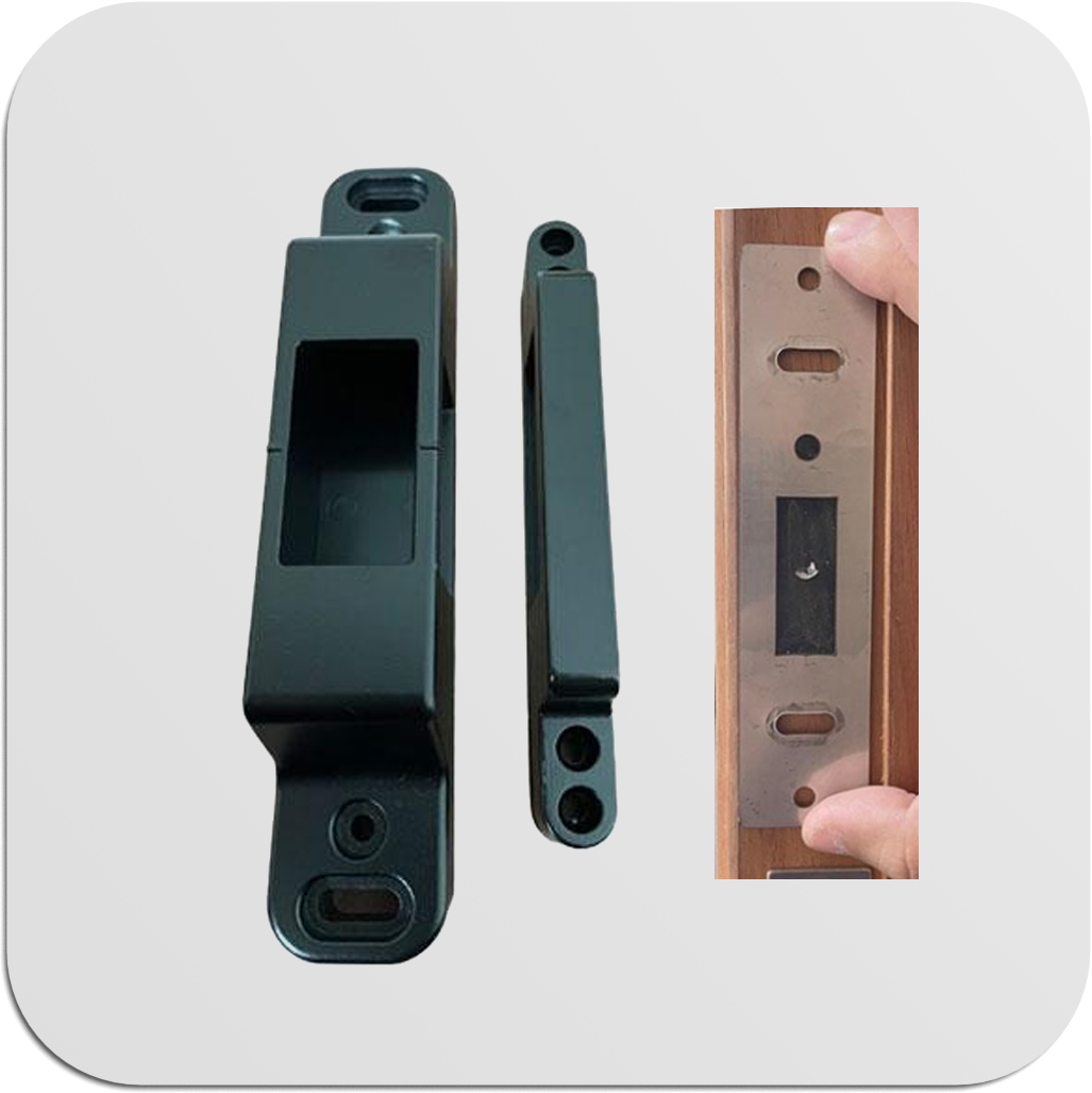 搭配對應鎖匣的受口盒或受口片,穩固安裝電子鎖的門扇。