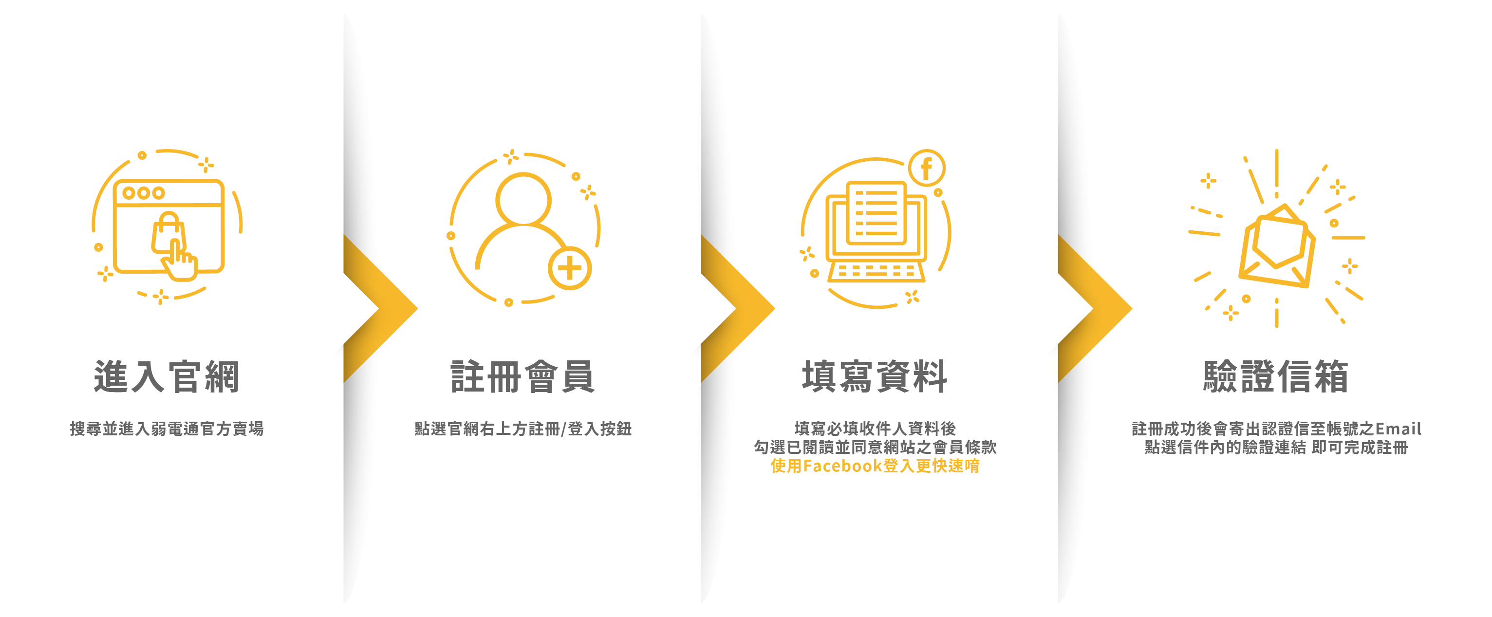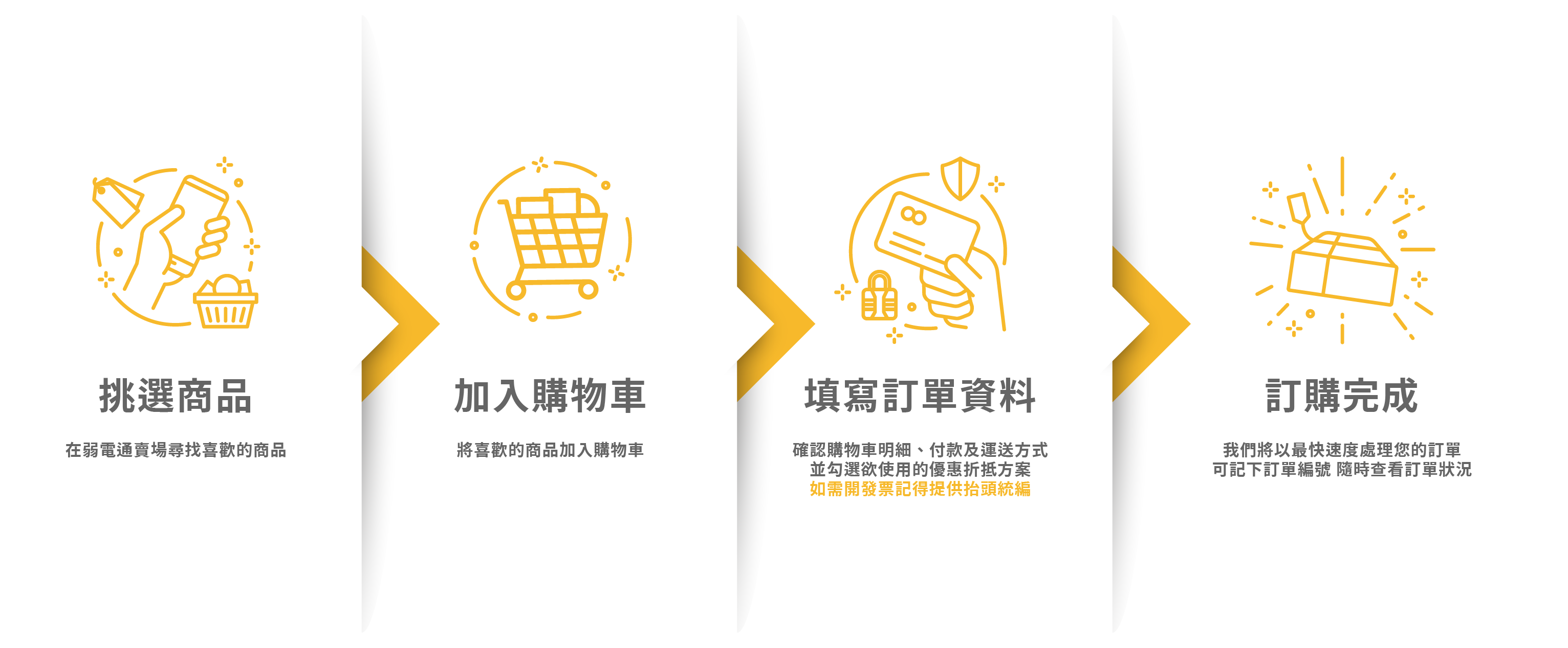 弱電通提供簡單又安全的交易環境,在進行交易前,需請先加入會員 ,加入會員是完全免費的,於加入完成後,即可開始購物!