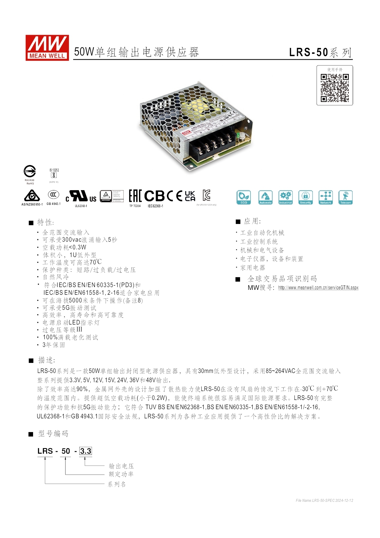 ➤ 完整安規認證: IEC/EN60335-1(PD3), IEC/EN61558-1,-2-16; IEC/EN/UL60950-1及GB4943