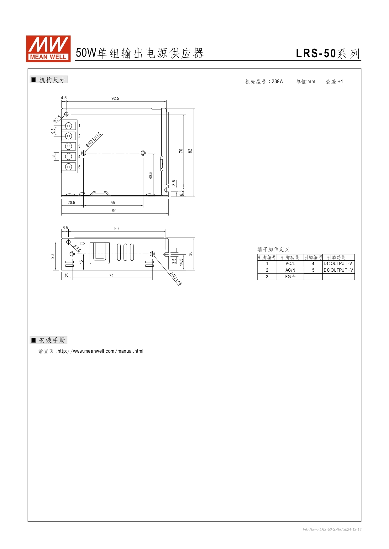➤ 無PFC功能、小型化及1U低高度(30mm)、操作高度達5000米