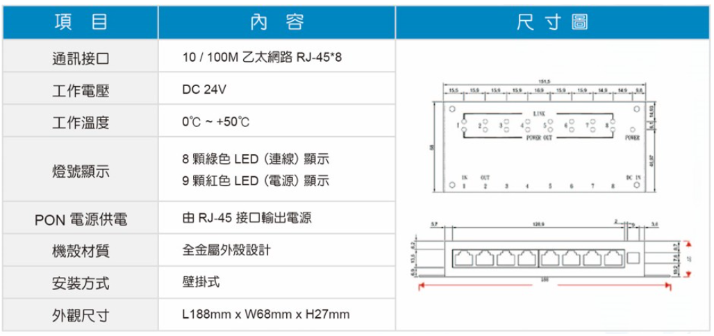 ➤提供電源供應指示燈及連線狀態指示燈顯示,方便施工辨識