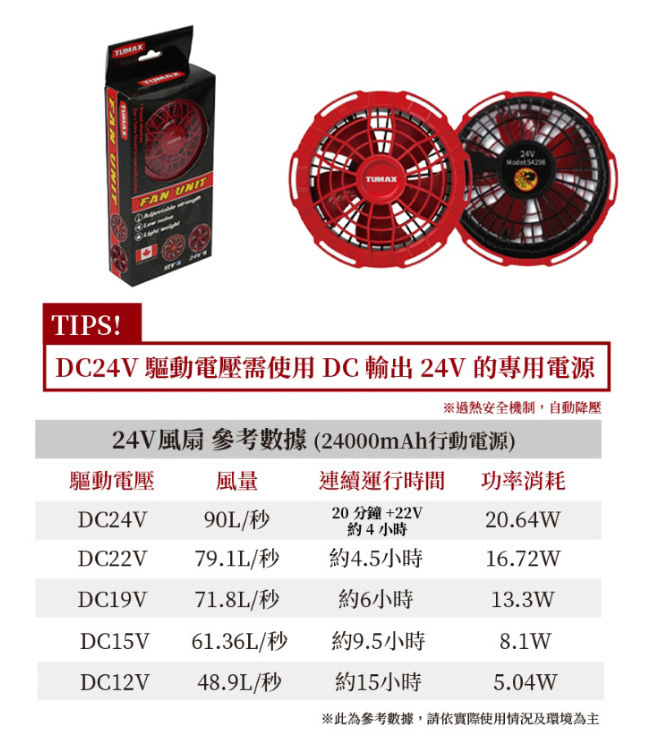 *需搭配TUMAX專用電池及風扇衣使用,另有套組賣場*