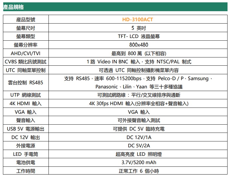 ➤800 萬 AHD/CVI/TVI 輸入測試+ UTC 菜單控制