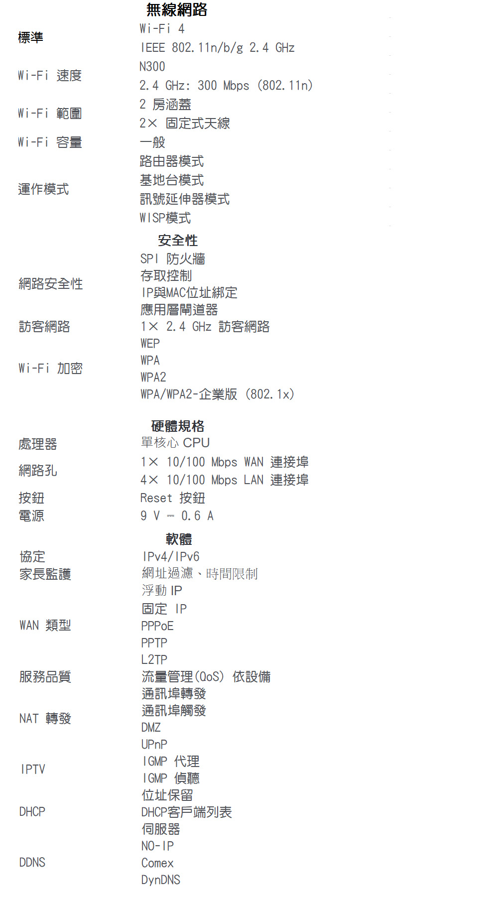 ➤300Mbps無線網路傳輸,適合個人、家庭網路使用。